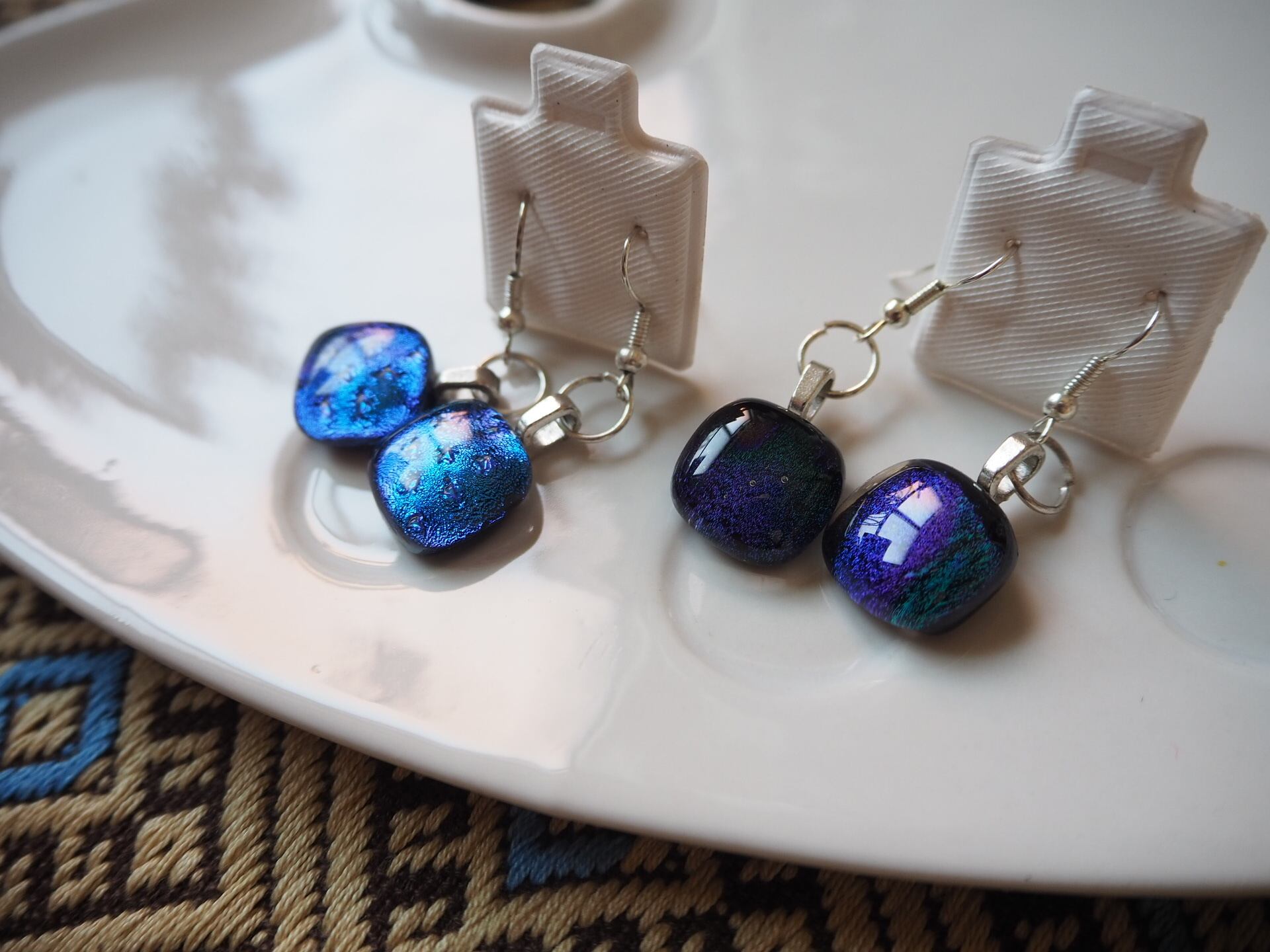 ガラスでできた手作りのピアス。